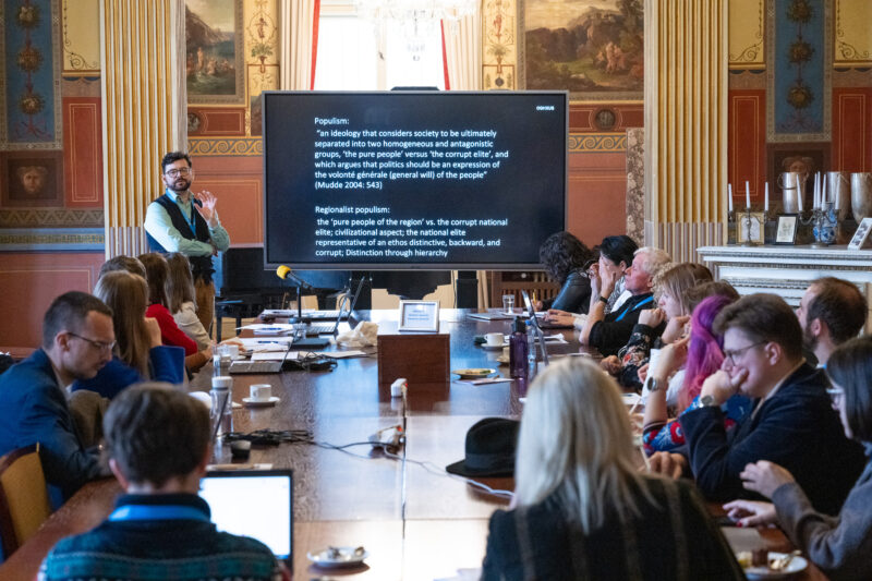 Closing remarks were delivered by sociologist Petra Guasti, who conducted a thorough reading of all the papers presented. She not only highlighted the interconnections between the different panels, but also critically examined how each presenter navigated the “muddied waters” of analyzing populisms. Her recently published book, Capire il Populismo (“Understanding Populism,” co-authored with Zulianello M.), served as a framework for debunking six myths about populism. It is now the challenge for the project team to integrate the insights from this kick-off event and address them in the ongoing ethnographic research.